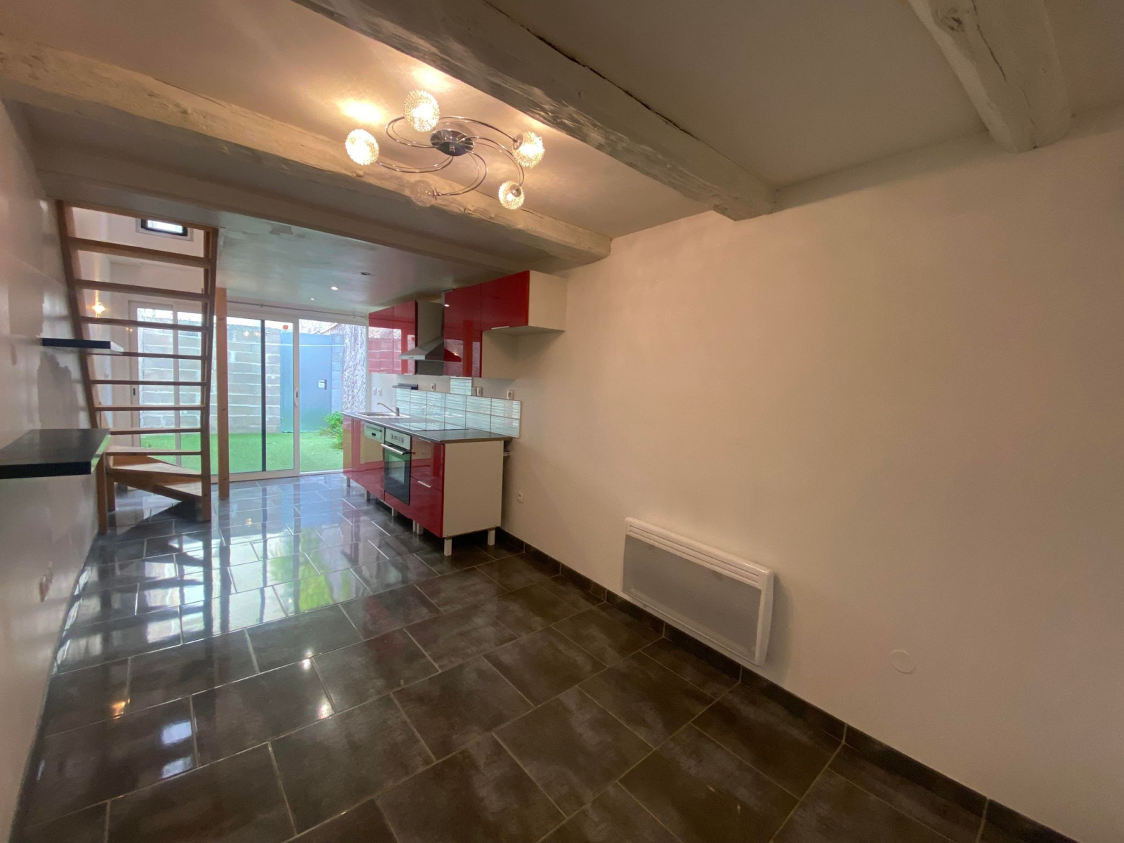Loyer 600 € + 20 € charges ( ordures ménagères, entretien pompe à chaleur). Soit 620 € loyer CC.