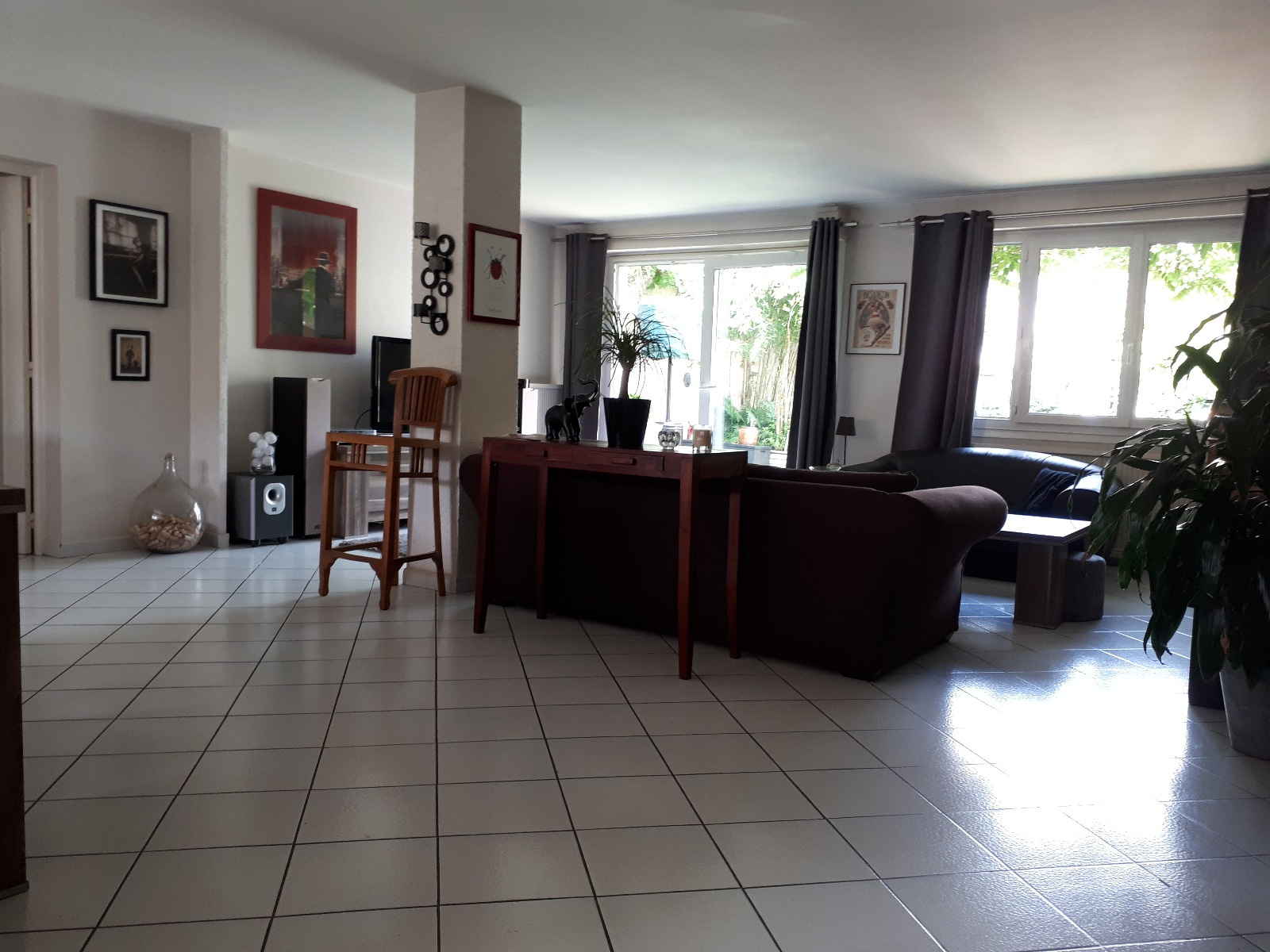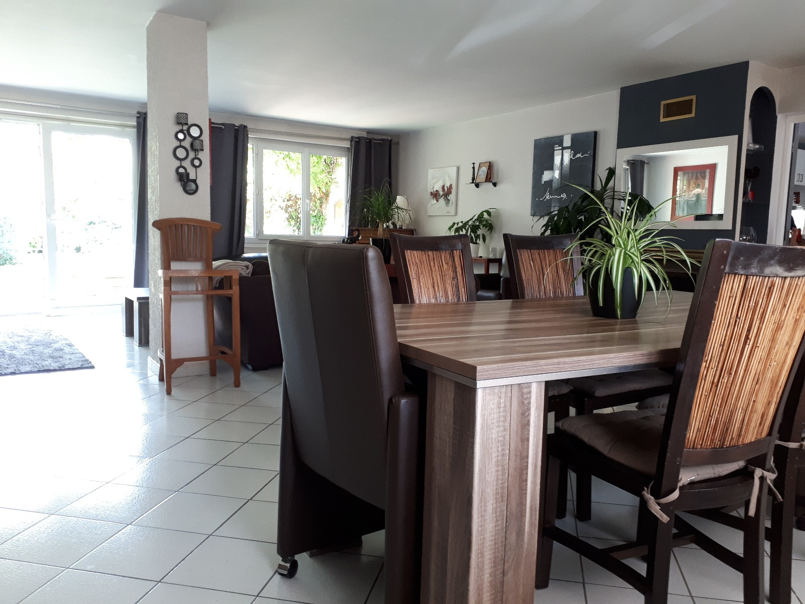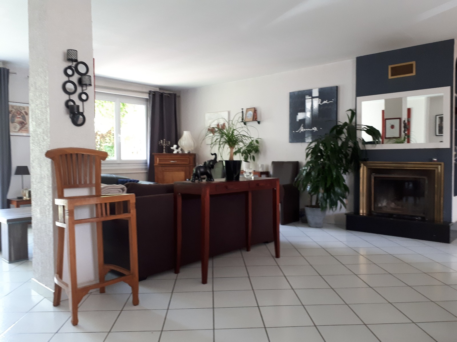 Un beau salon séjour lumineux traversant de 50m² avec cheminée et accès direct au jardin de 90m² ( orienté Ouest)