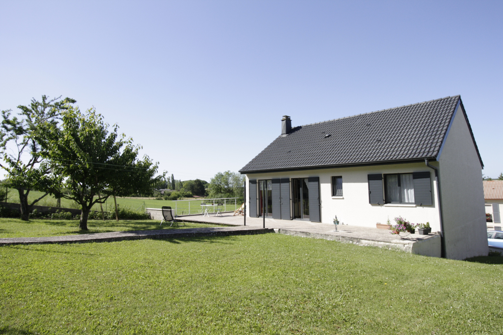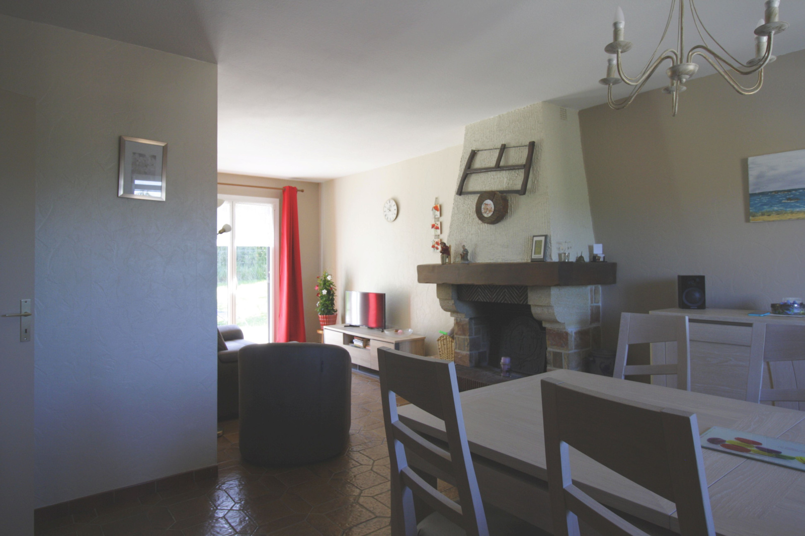 - Un salon séjour de 30m² avec cheminée, accès direct terrasse/jardin