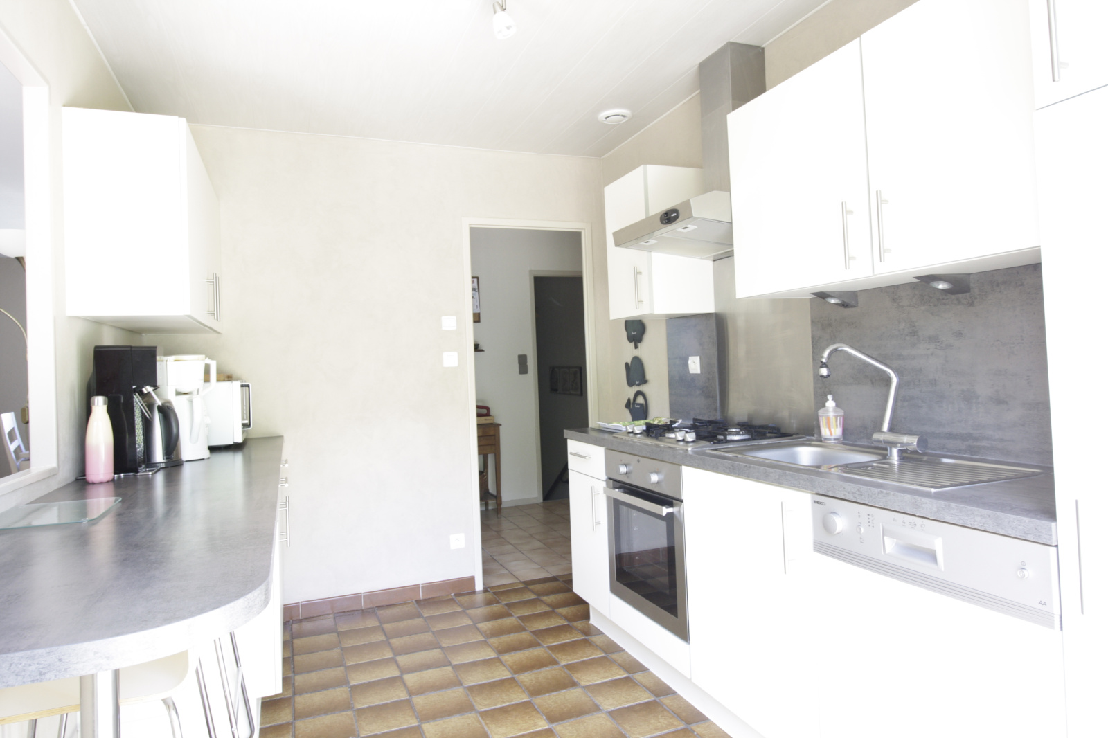 - Une cuisine équipée ( plaque/four/hotte/lave vaisselle/frigo/congélateur intégrés)