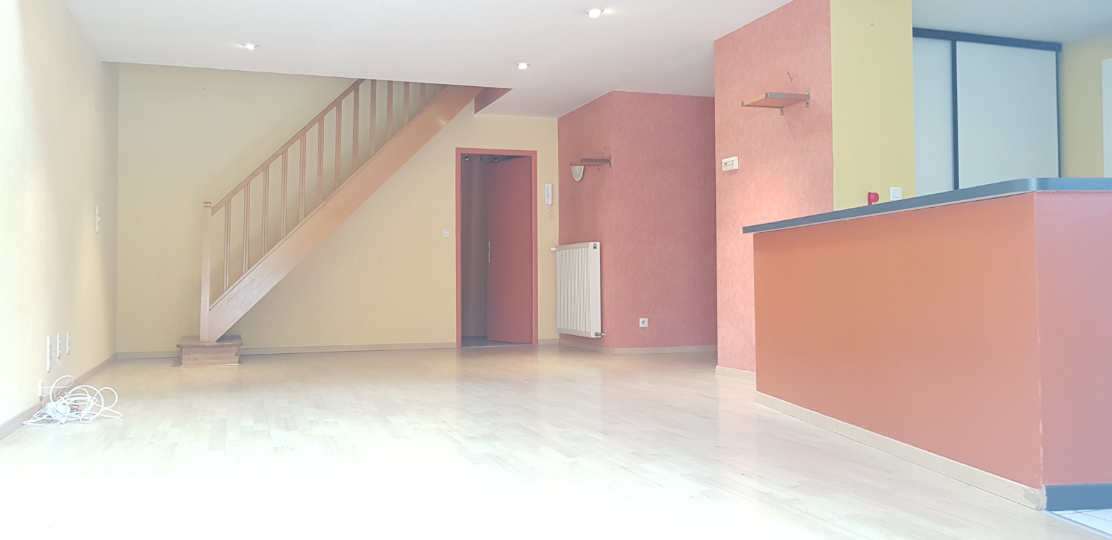 A l'étage : cuisine aménagée et équipée ouverte sur un vaste séjour le tout d'une surface de 48m² avec accès terrasse et jardin indépendant d'environ 100m², une chambre, w.c séparé et placard de rangement.